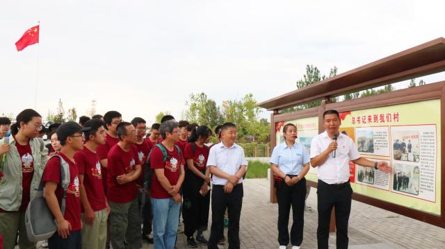 村委会干部为师生介绍坊城新村