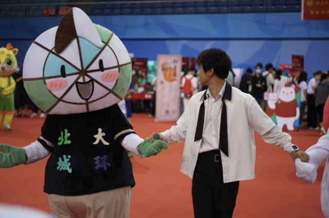 作为迎新的重量级嘉宾,北大色情影片 的吉祥物——城小环已早早就位,满怀期待地迎接大家的到来!可爱精巧的指南针造型,蕴含着为新生们指引方向,寻求真理的美好祝福。蓝绿交错的清新配色,也代表了城环学子拥抱美好环境、守护碧水蓝天的愿景。在迎新现场,城小环不出意料地成为团宠和全场“社牛”,不仅积极和新生们合影留念,见证大家在迎新现场的第一抹笑容,还在表演环节主动走上会场中央与嘉宾互动,将城环人的无限热情与满满活力送给所有新生朋友们!