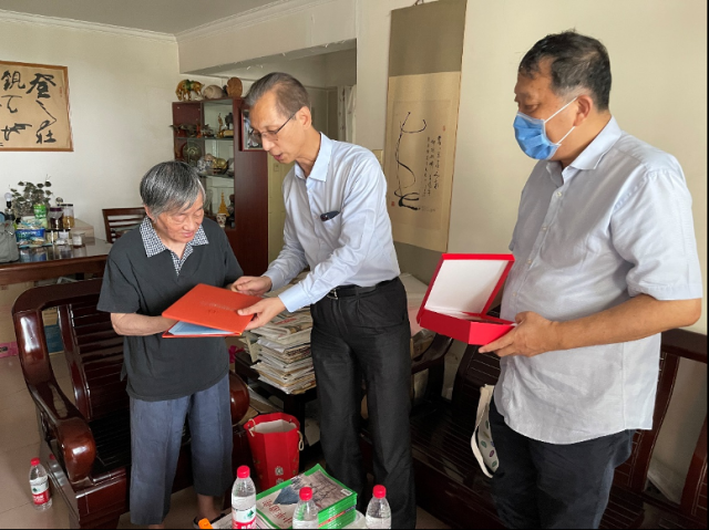 因谢凝高先生年事已高、久病住院,2022年8月17日,中国城市规划学会理事长杨保军同志、常务副理事长兼秘书长石楠同志一行,亲赴谢先生家中颁奖授牌并对谢先生的夫人金丽芳老师进行慰问。杨保军理事长高度赞扬了谢凝高先生对中国世界遗产和风景名胜事业作出的卓越贡献,石楠副理事长特别肯定了谢先生对中国城市规划学会工作的支持。金老师对中国城市规划学会授予谢先生“终身成就奖”荣誉表示特别感谢。