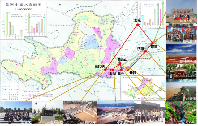 实习路线途经三门峡、洛阳、云台山、郑州、开封、济南、东营等地,实习考察内容包括沿线自然地理空间分异、黄河中游水土流失及水利工程设施、黄河下游地上悬河成因及治理、黄河三角洲综合开发与湿地保护、黄河文明的起源与历史演变等。在实习考察中,同学们加深了对黄河自然地理概况的认知,了解了黄河与华夏文明的密切联系,尤其是通过考察黄河生态环境问题及开发治理方案,对“黄河流域生态保护与高质量发展”战略有了更加深刻的理解。