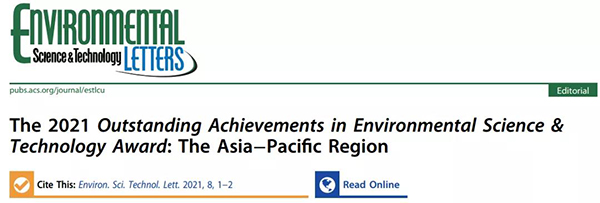 2021年,ES&T、ES&T Letters和ACS ENVR联合设立了ES&T杰出成就奖(Outstanding Achievements in Environmental Science & Technology Award),以表彰那些在人类健康和环境保护做出突出贡献的学者。首届ES&T杰出成就奖将聚焦于亚太地区,该地区地区拥有44亿人口,环境和健康挑战极为突出,然而近年来亚太地区环境改变世人共睹、创新机会影响深远、各方合作也被不断加强。