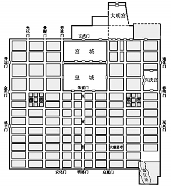 唐长安城平面示意图