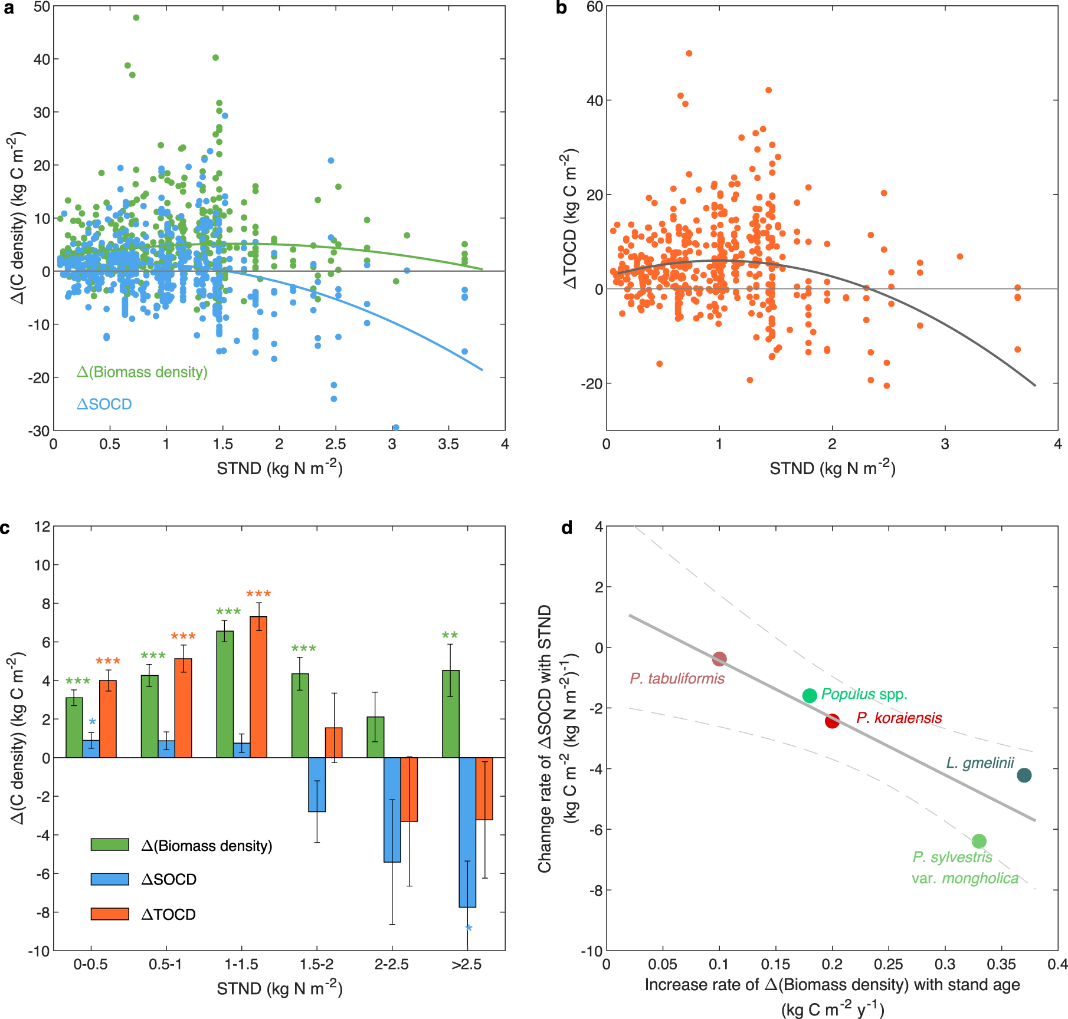Nature Communications∣朴世龙院士团队揭示土壤氮对人工林植被碳动态和土壤有机碳动态的调节作用