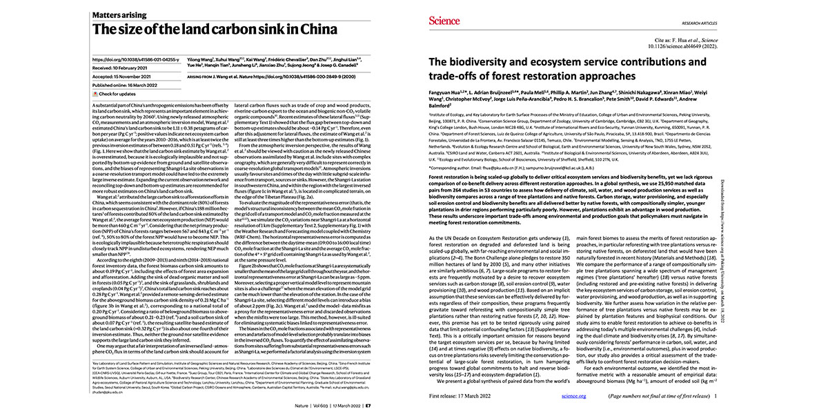 北大色情影片 生态研究中心在Science同期发表两篇论文,阐明森林的生态功能及形成机理