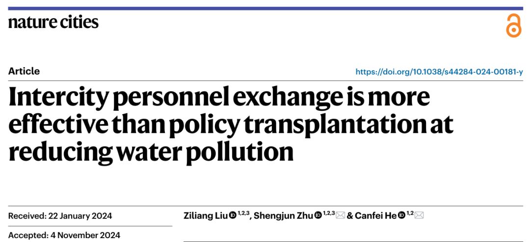 贺灿飞、朱晟君团队在《Nature Cities》发文揭示中国城市间人员交流对缓解水污染的有效作用