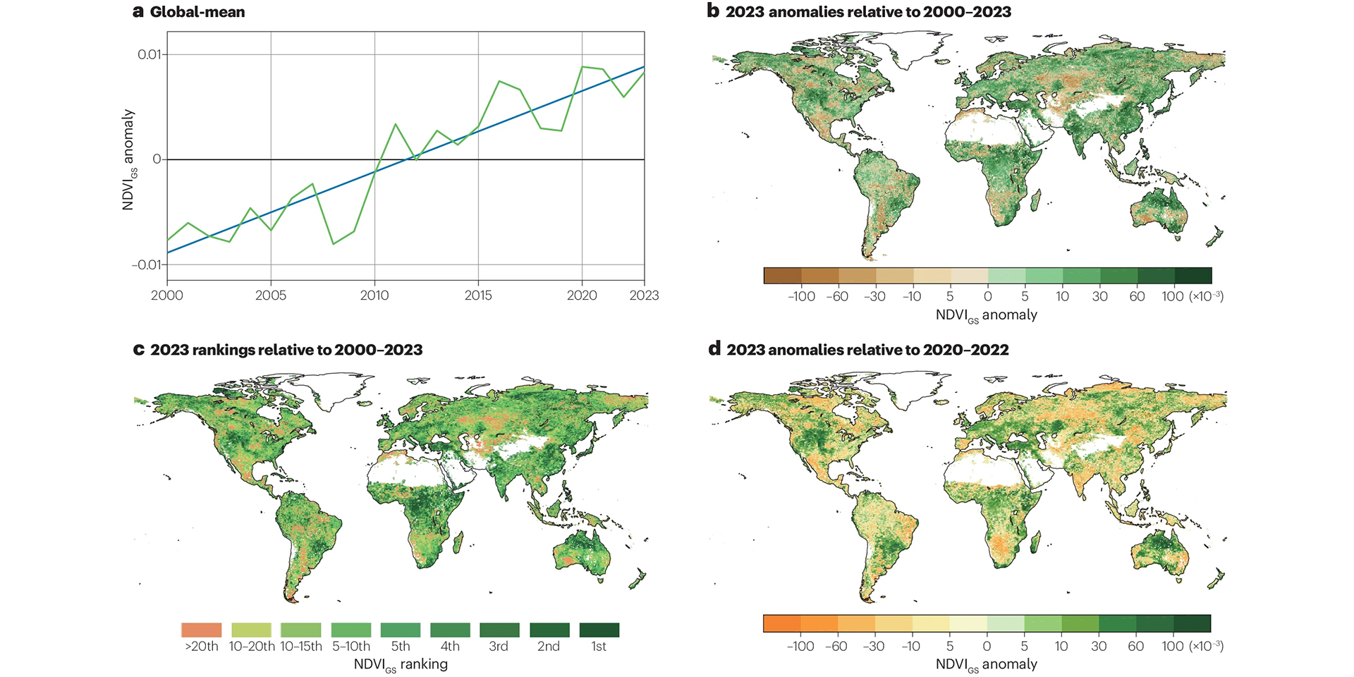 朴世龙院士团队应邀在《Nature Reviews Earth & Environment》发文揭示2023年全球植被生长状况