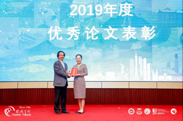 吴老师向黄潇婷师姐颁发《旅游学刊》2019年度优秀论文表彰