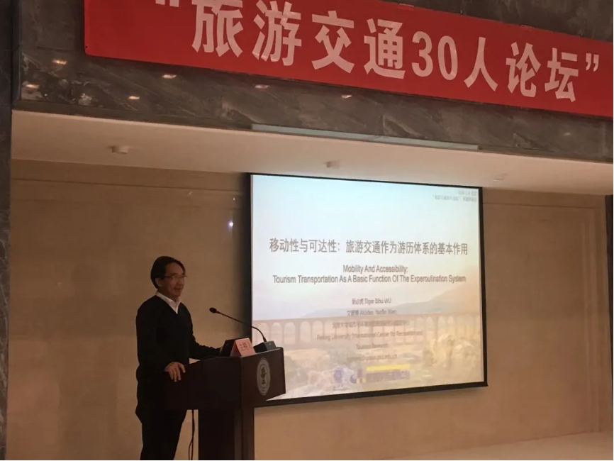 A:以前大部分时间待在学校,但现在一半是到各地开会。我不会为了站台去做“花瓶”,至少要10分钟以上的主旨发言才去,时间花在向学者、领导、行业精英输出思想上才是有价值的。当然一些特殊情况我也义不容辞,比如说学院的学生暑期实践或者有扶贫任务要到某个市县,找到我只要时间合适也会主动参加。无论在哪里,我的PPT上都写的是北大,这些年北大旅研已经形成一个品牌,无形之中也为学校做了点小贡献。